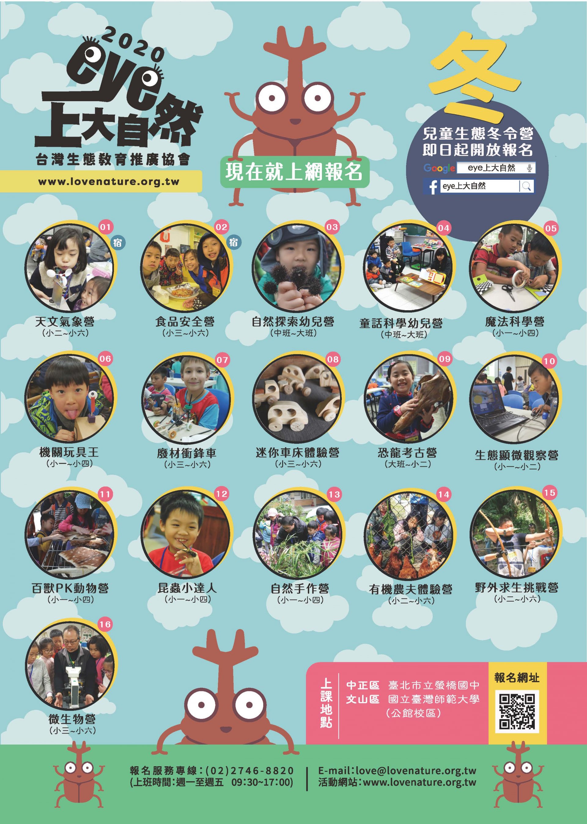 三、2020寒假兒童生態冬令營活動網址為https://www.lovenature.org.tw/ ,歡迎線上報名。