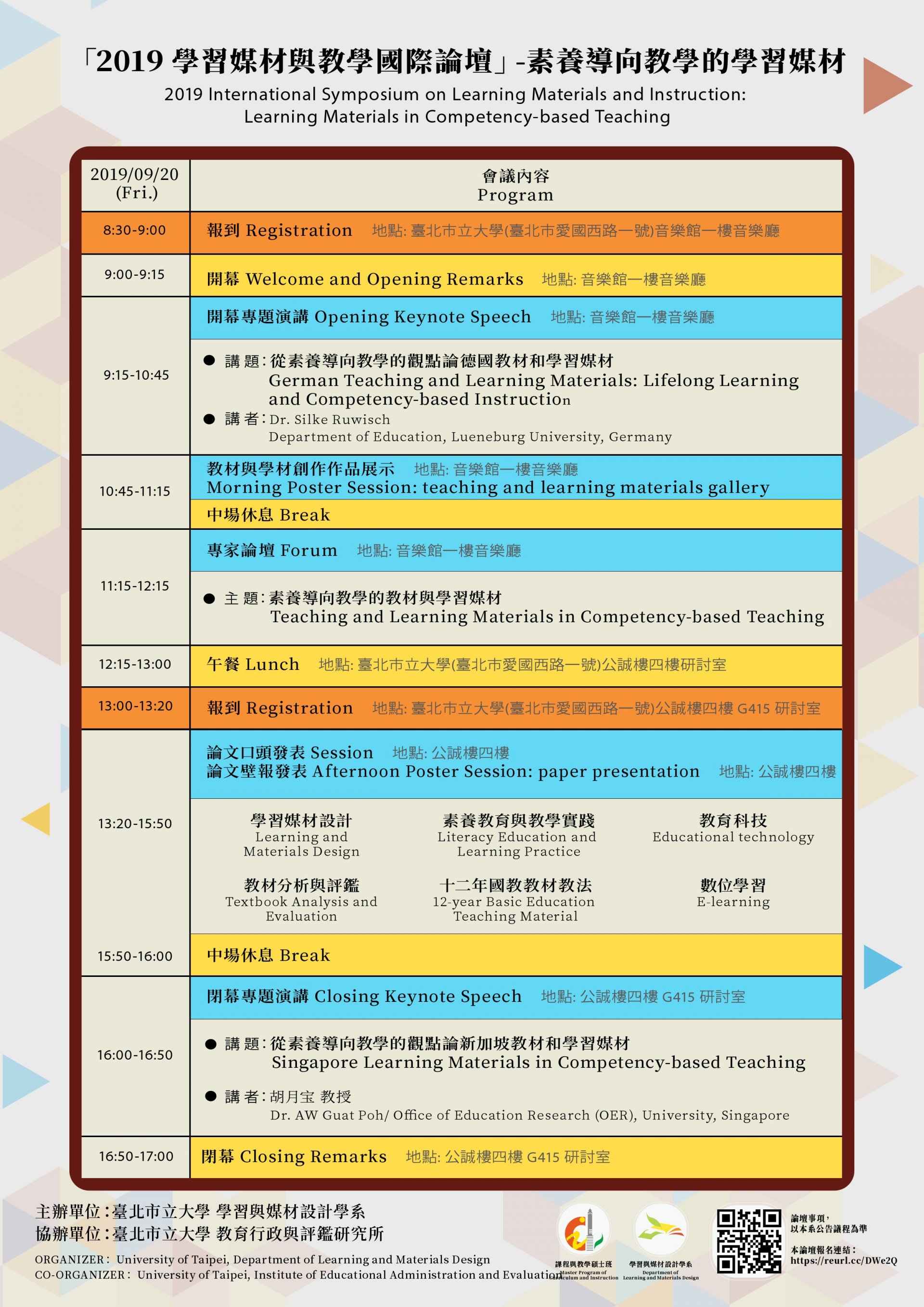 2、論文壁報發表:包含教材與學材創作作品展示、學習媒材設計、教材分析與評鑑、素養教育與教育實踐、12年國教等6項主題。