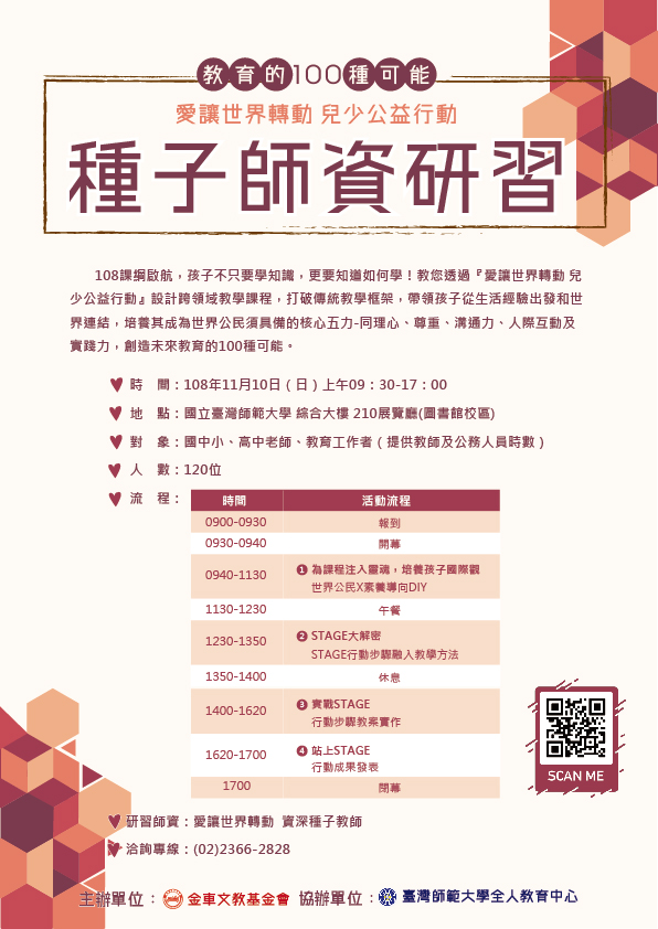 (一)研習時間:108年11月10 (日) 09:00-17:00