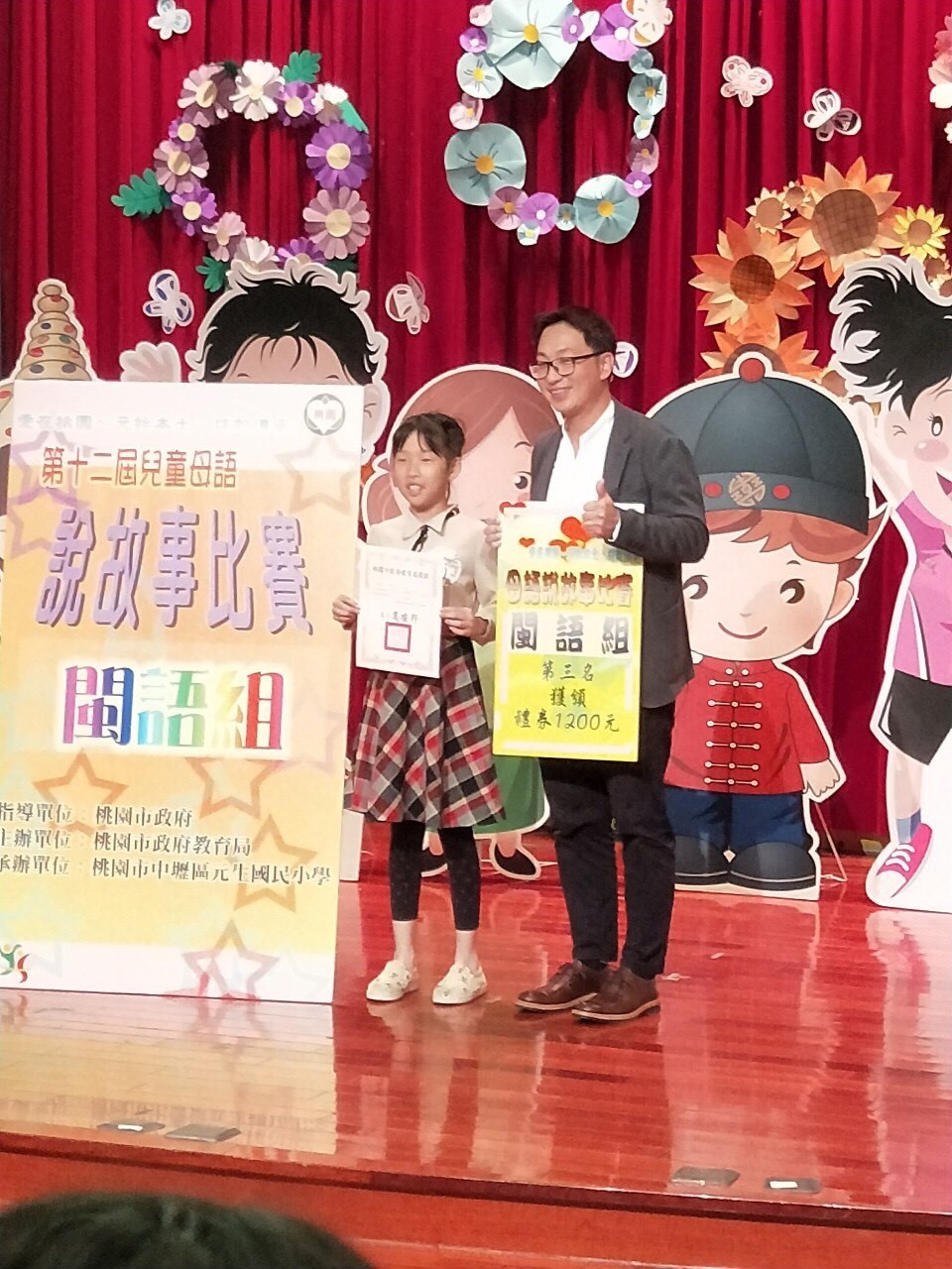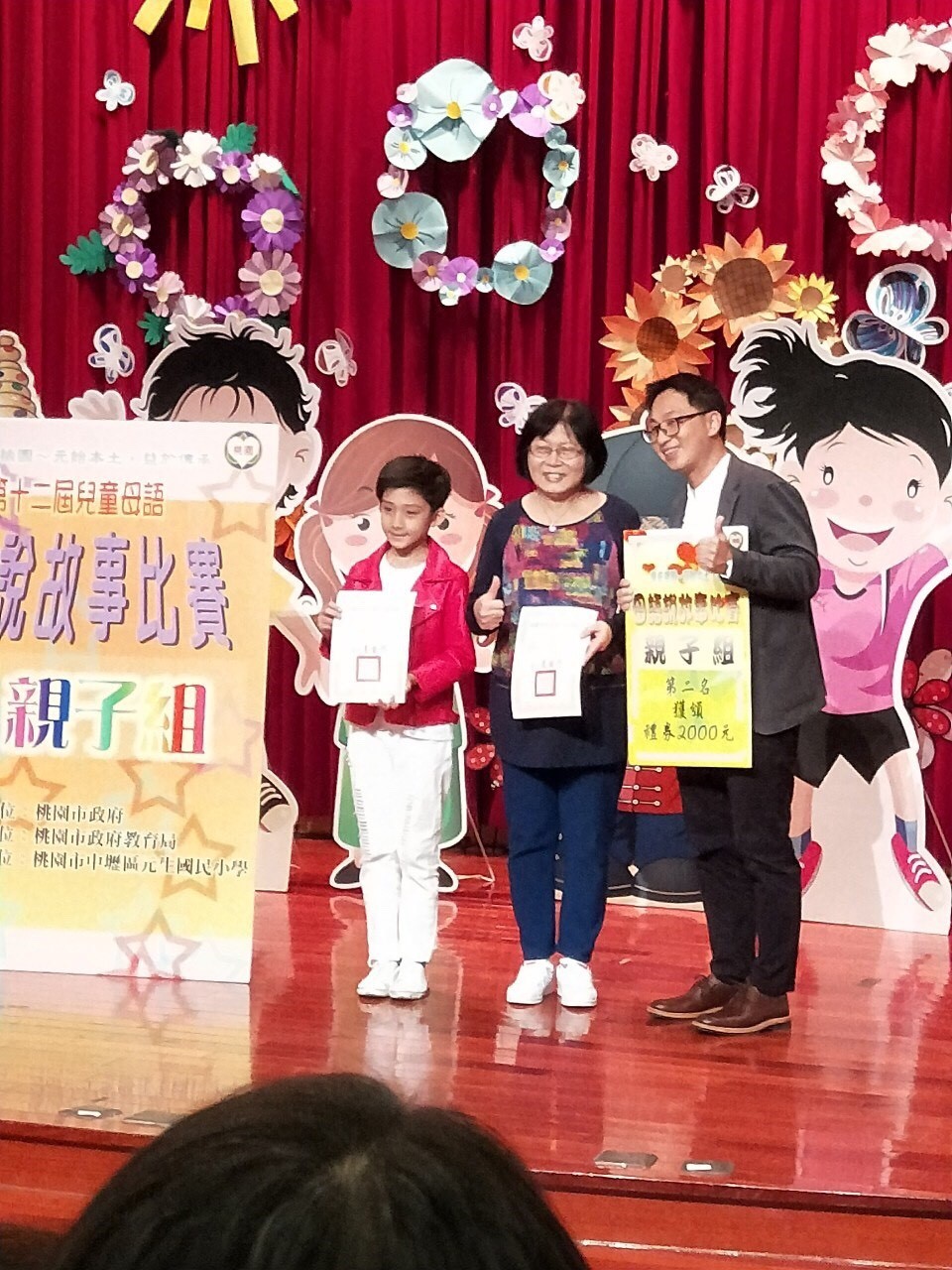 本次學校有兩組參賽,分別是「閩語組」408班吳蓓瑩同學和「親子組」408班楊智皓同學與曾素枝奶奶,指導老師是本校閩語教師楊碧珠老師。