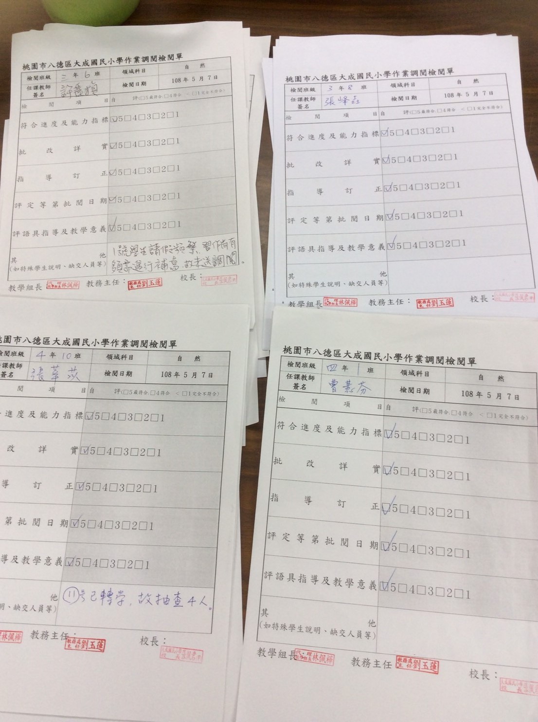 大成國小109學年度上學期推廣閱讀競賽各年級優選名單
