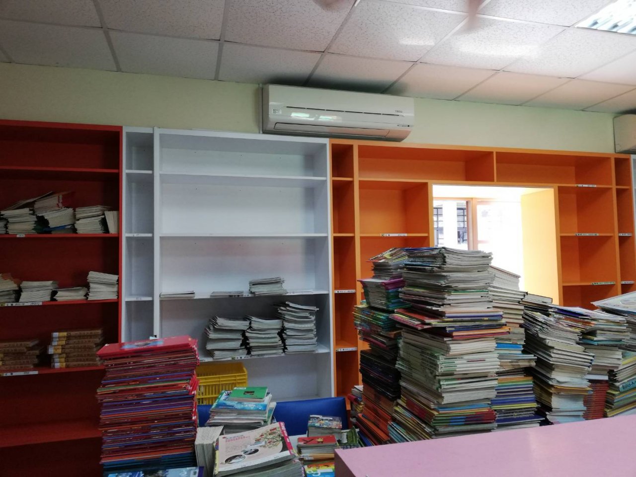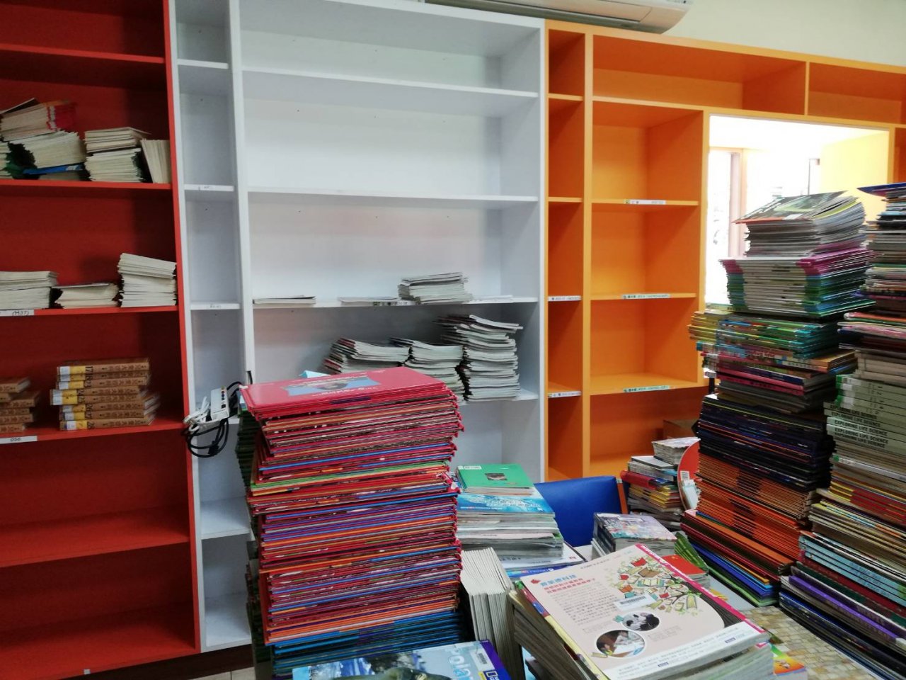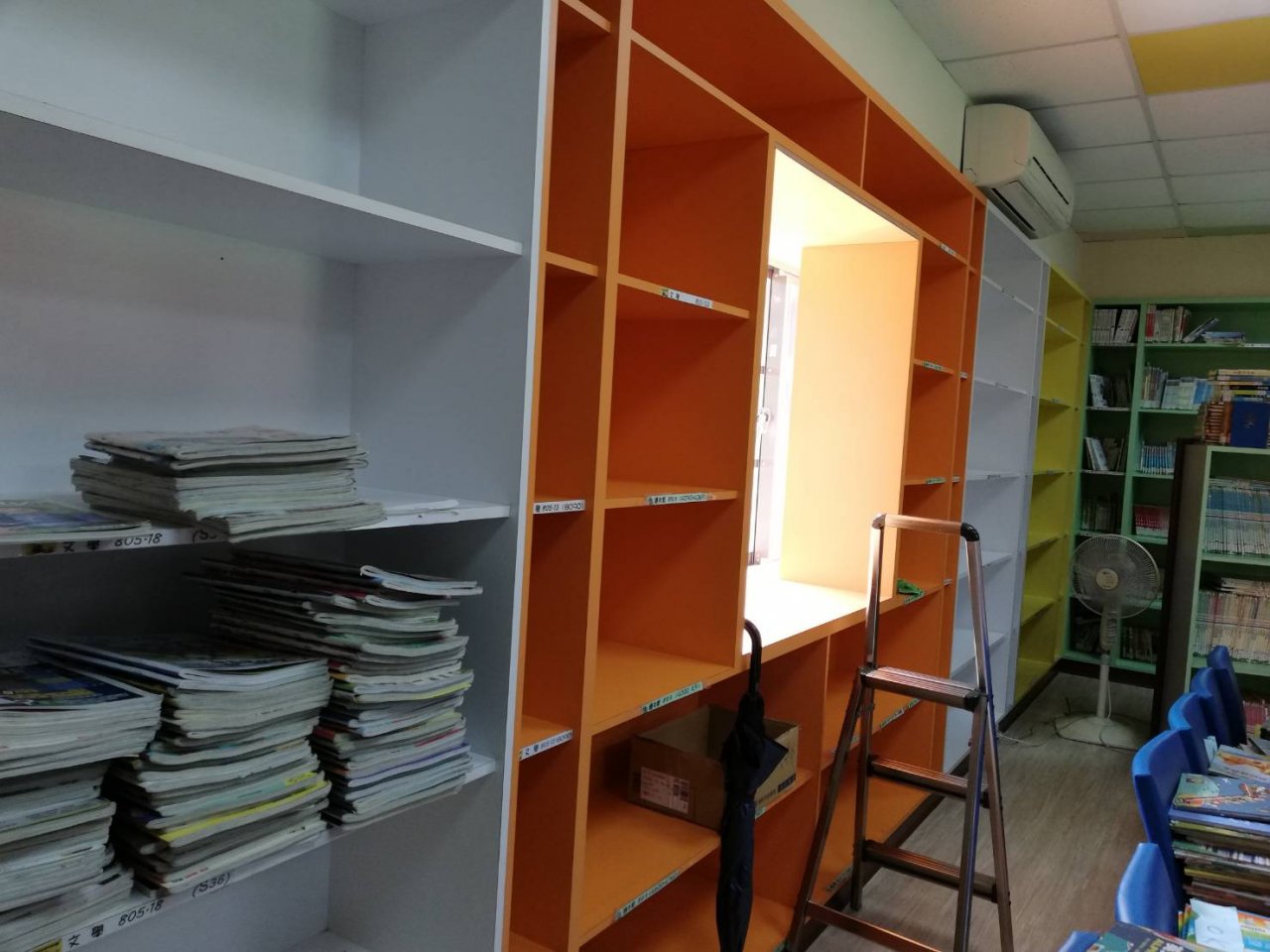 圖書館因為除蛀蟲蟲害工程,搬下整片牆的圖書,6/24上午和支援同仁倾麗小姐清掃後,兩人慢慢上架,1.5小時進度慢,但會漸入佳境,急需人手協助!!!