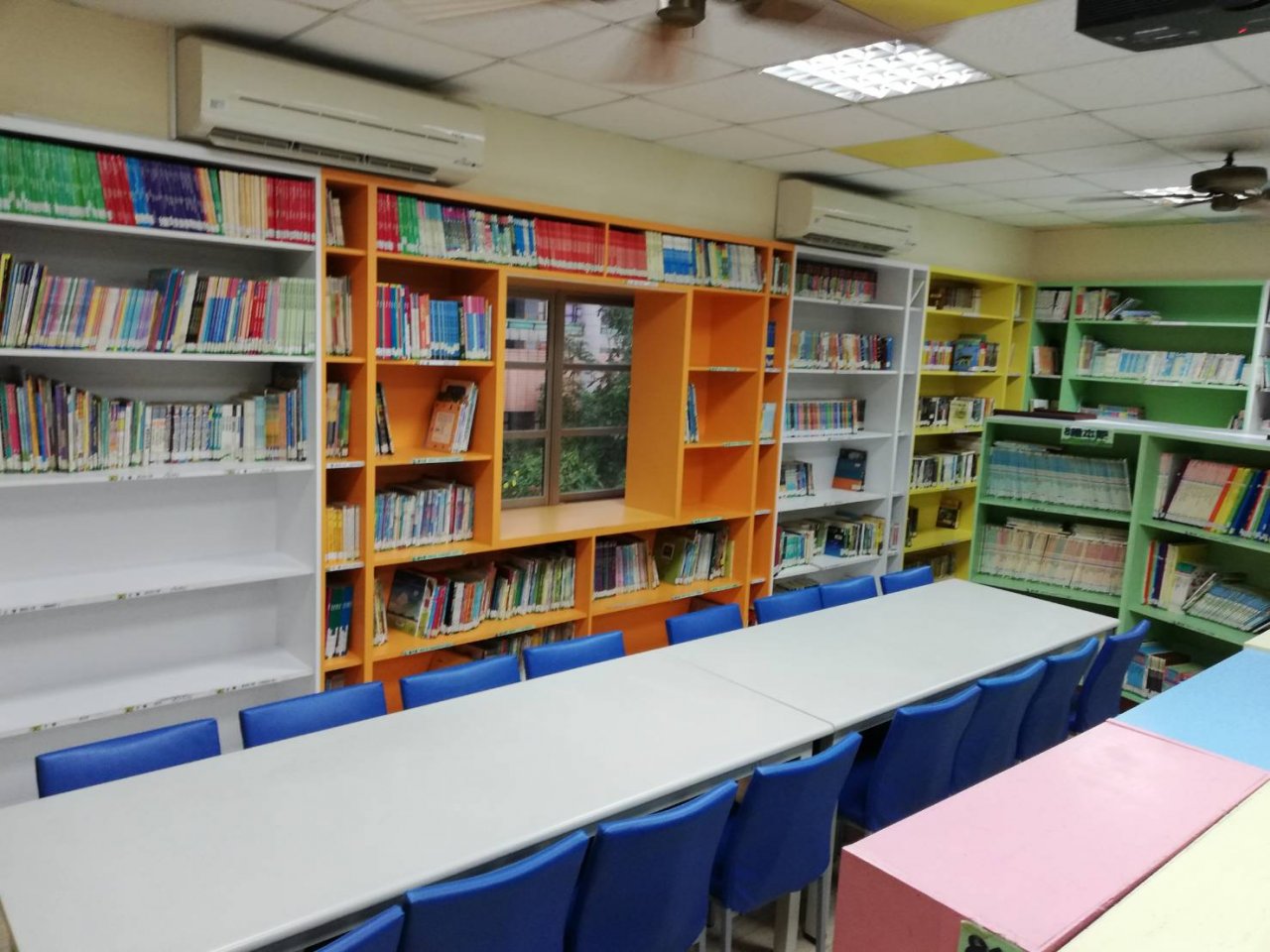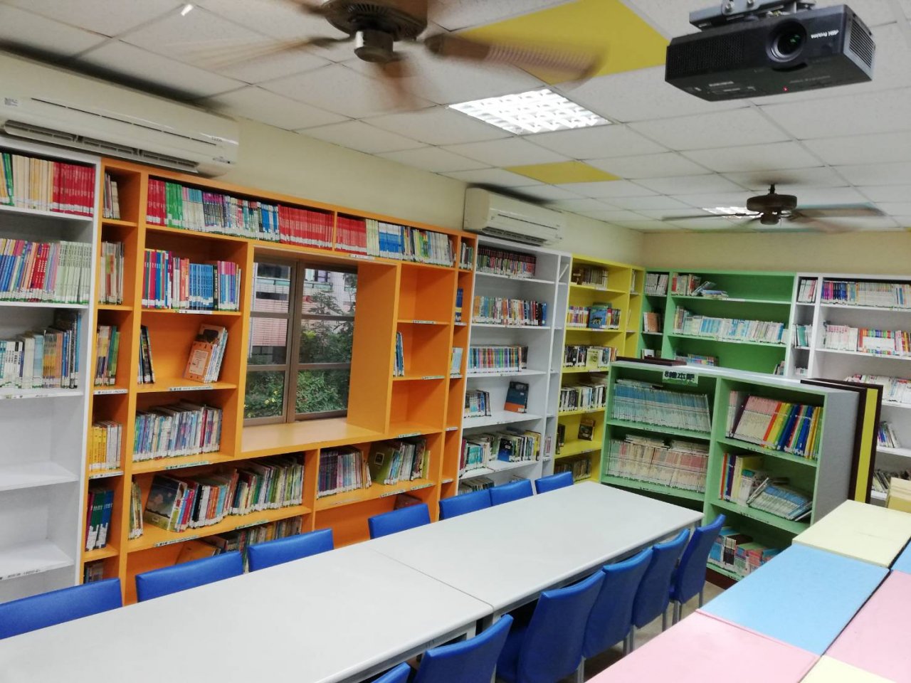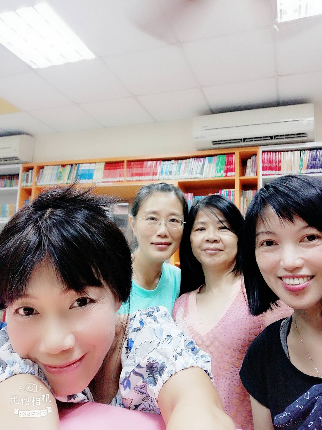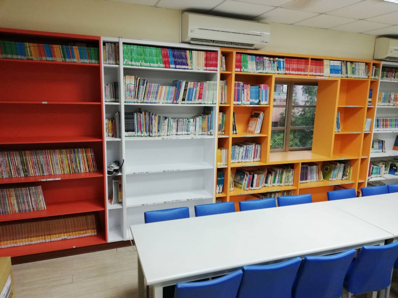感謝下午圖書志工雅芬、惠淑來幫忙,我們四人發揮螞蟻雄兵的團結力量!整片書牆終於完美呈現!