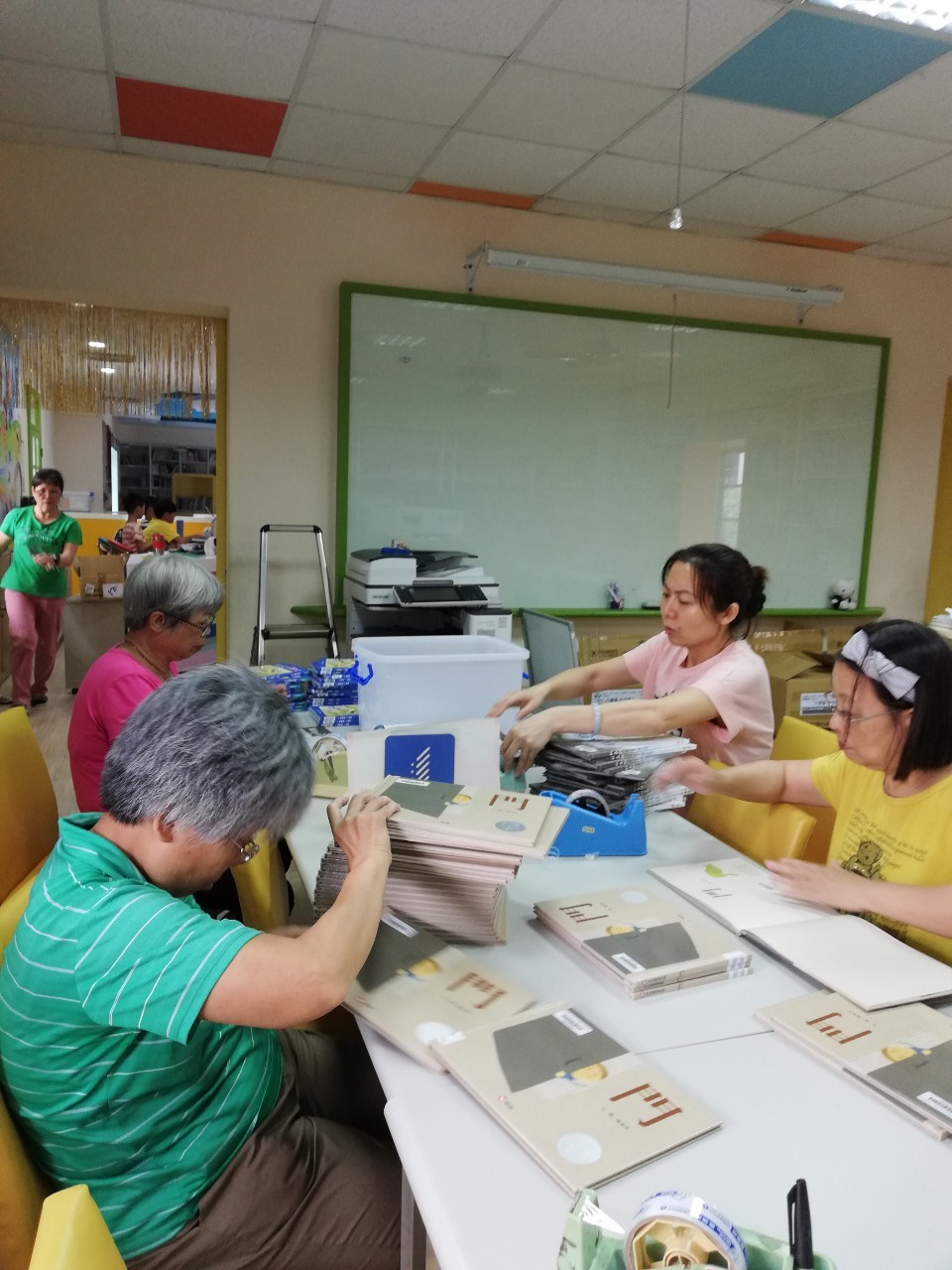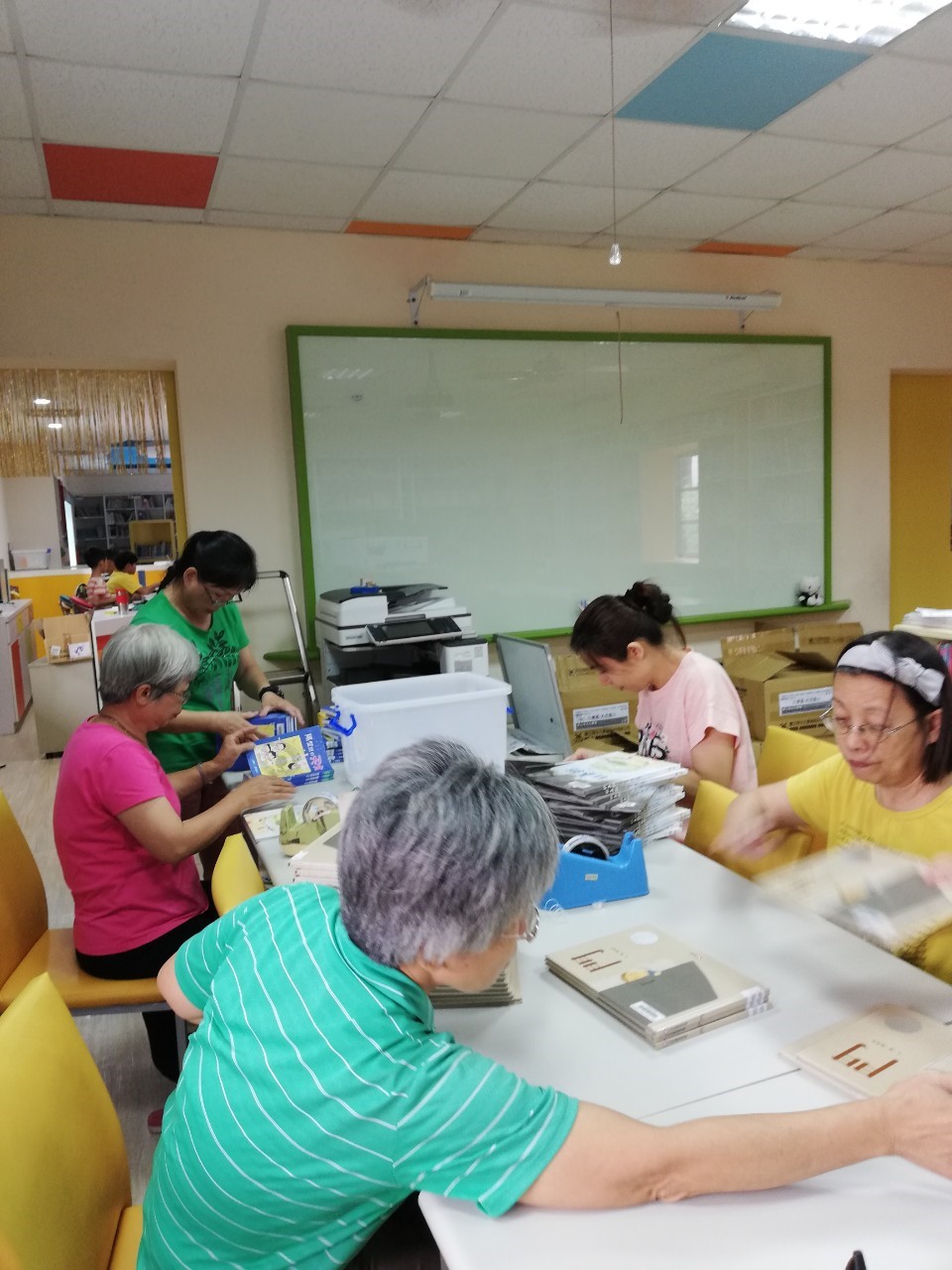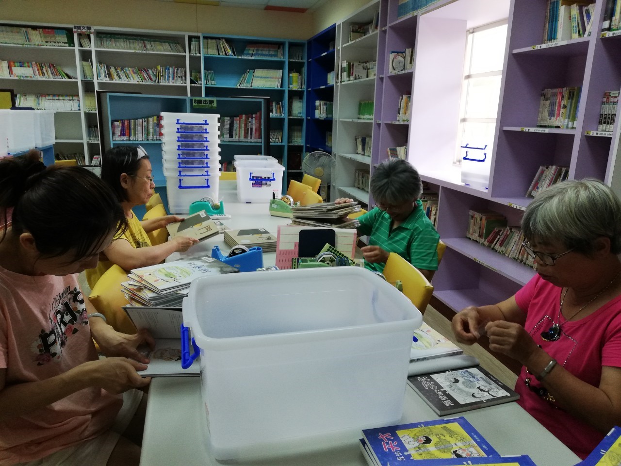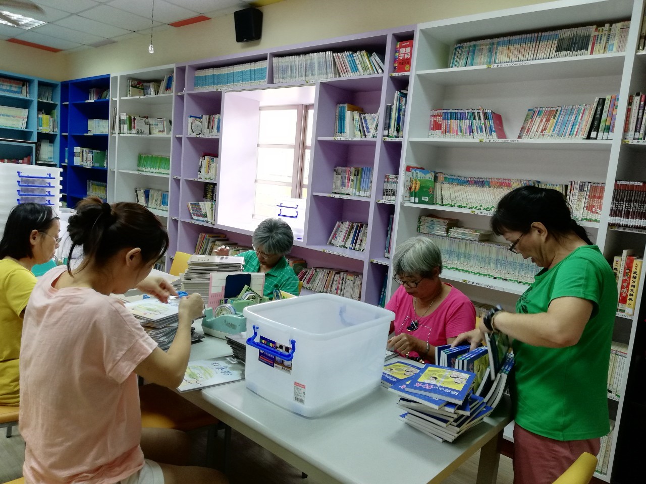 暑假第一週終於在到校幫忙的志工們不畏溽暑.熱浪及雷雨襲擊接力合作神助下~終於所有書籍有了新家-~謝謝所有參與的志工們!图書館華麗現身書香處處。