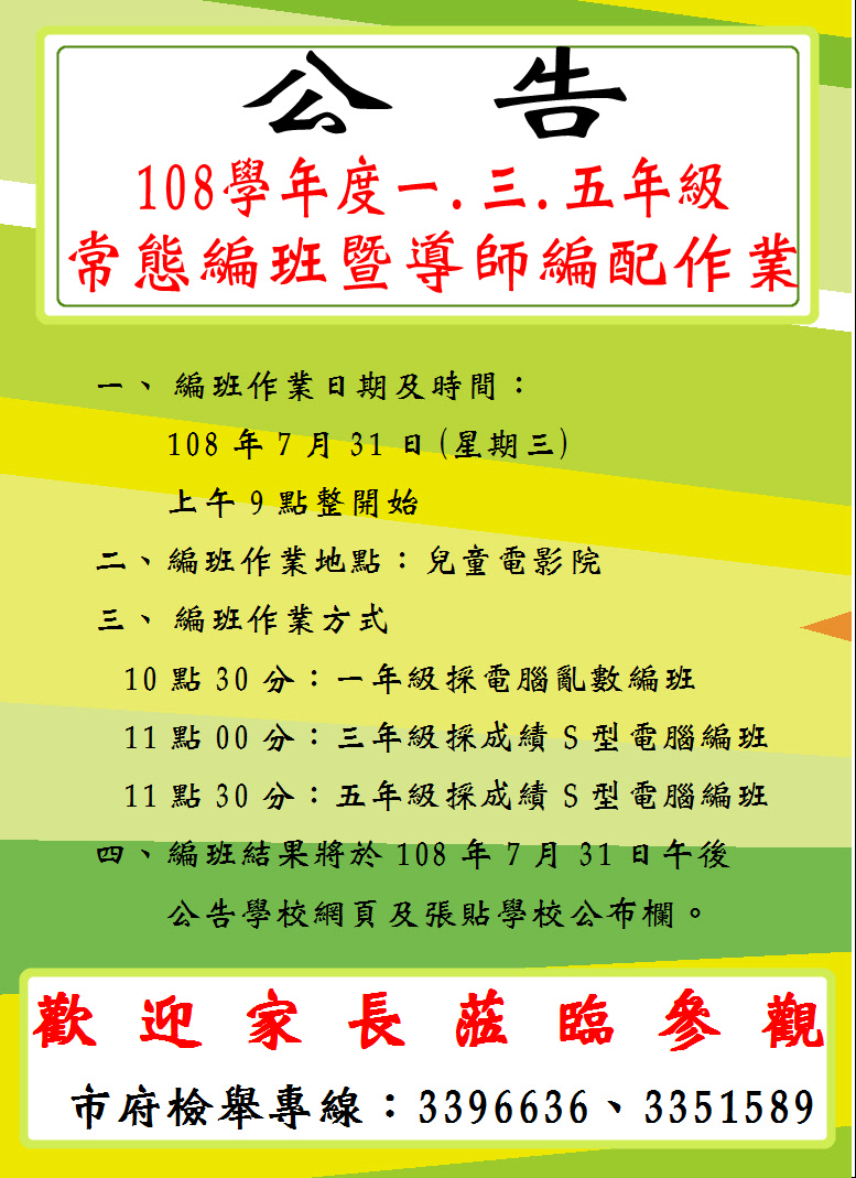 五、編班結果將於當日午後,作業完成後,公告學校網頁及張貼學校公布欄。