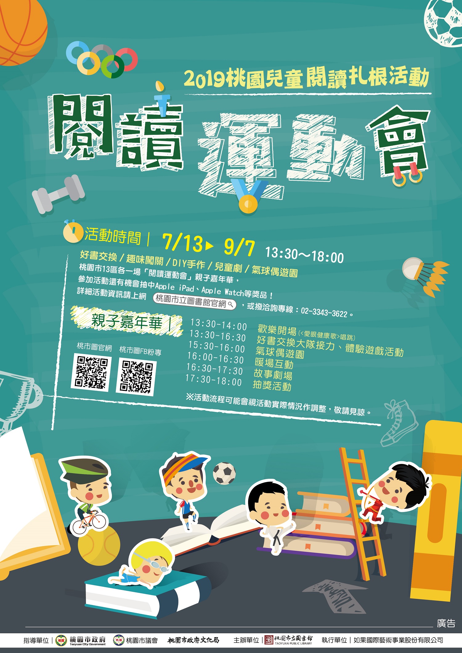「2019閱讀運動會―桃園兒童閱讀扎根活動」八德場8/3(六)13:30-18:00在大成熱鬧登場