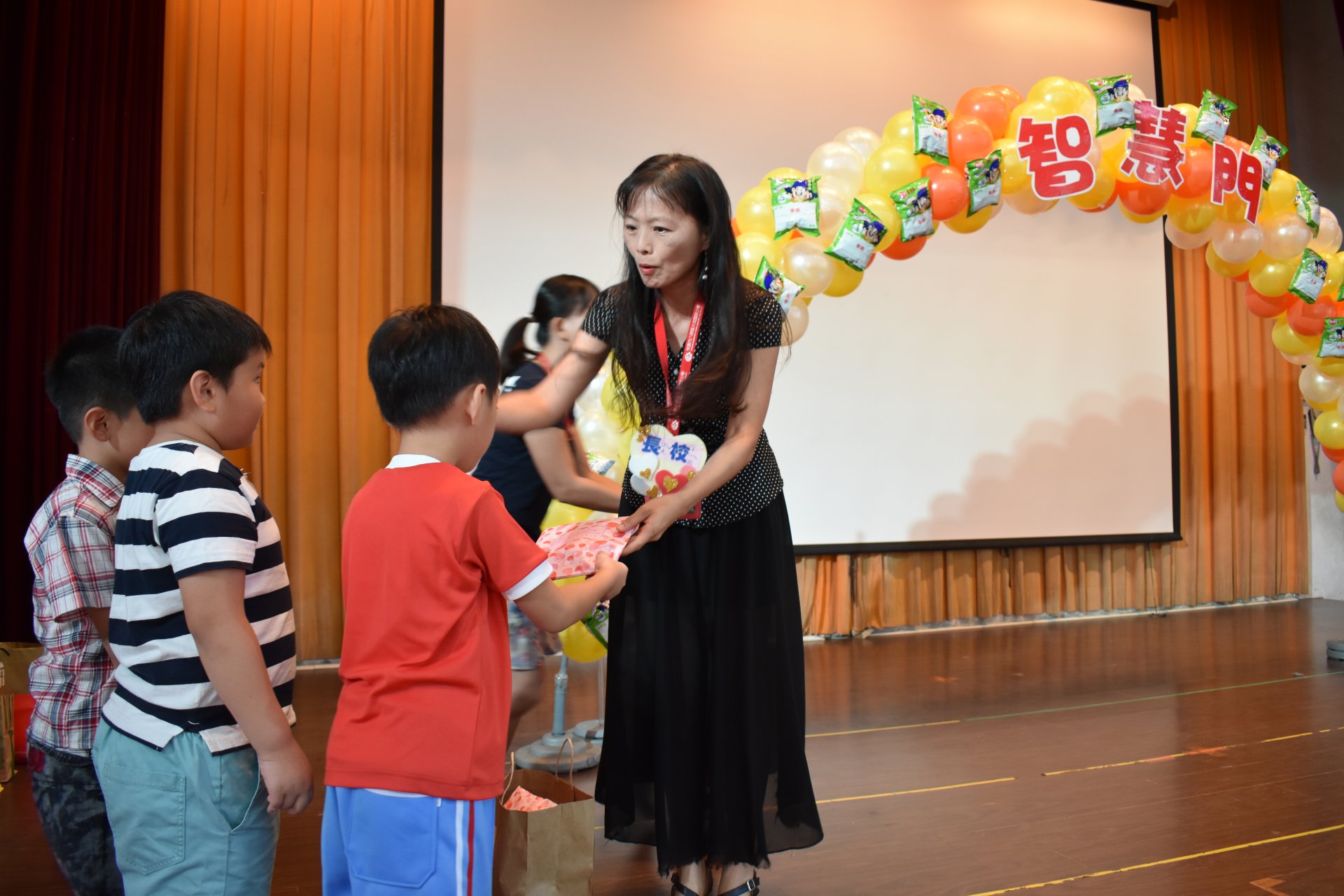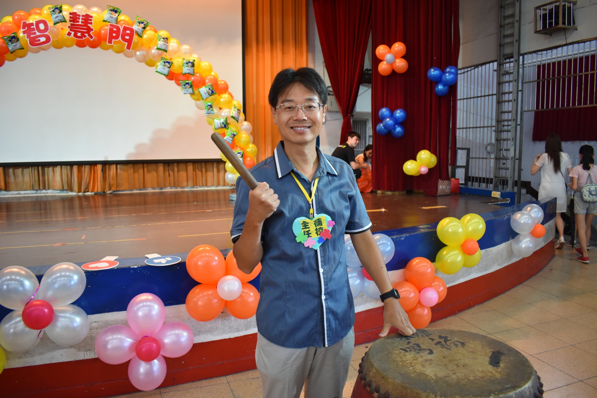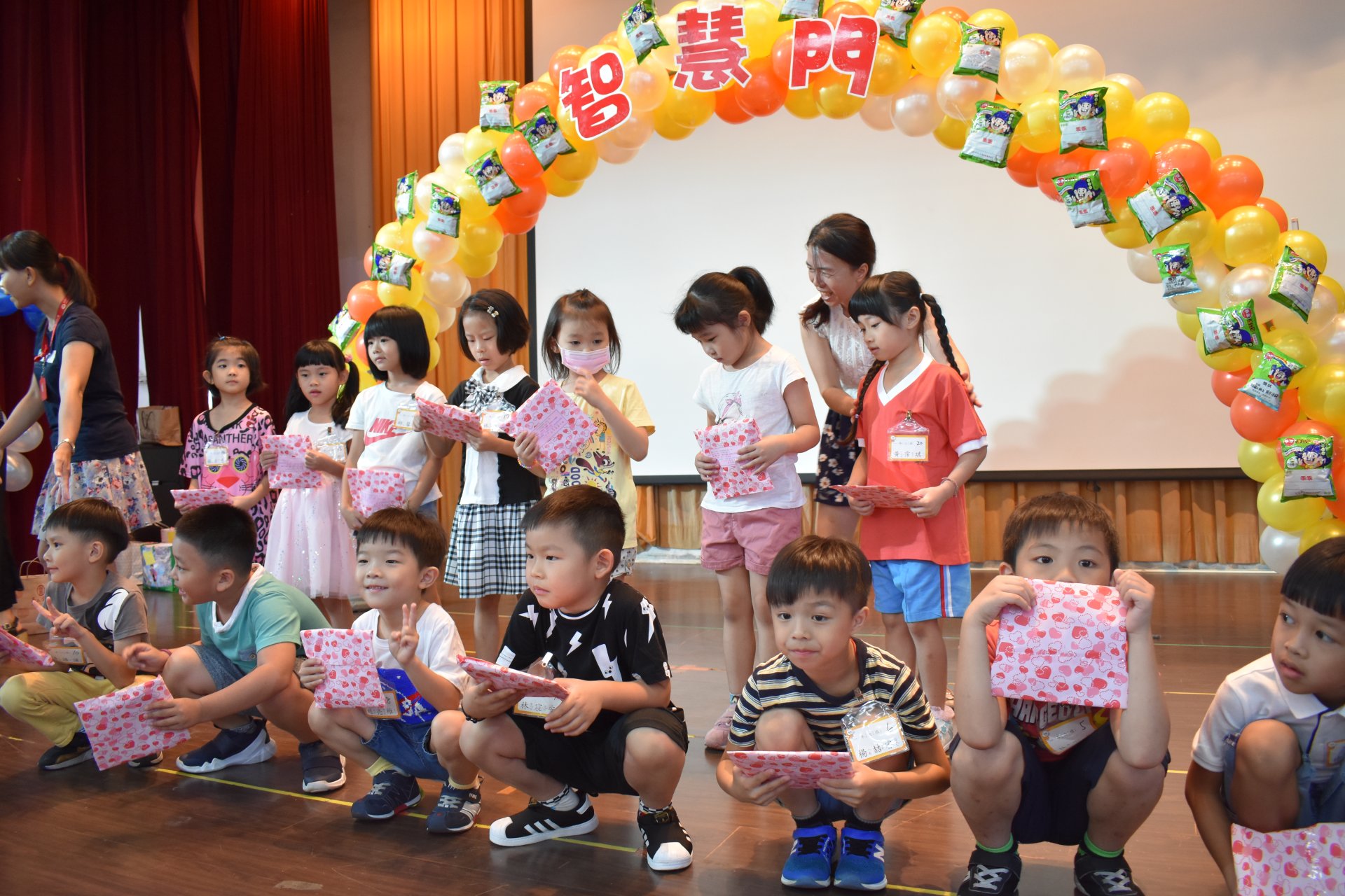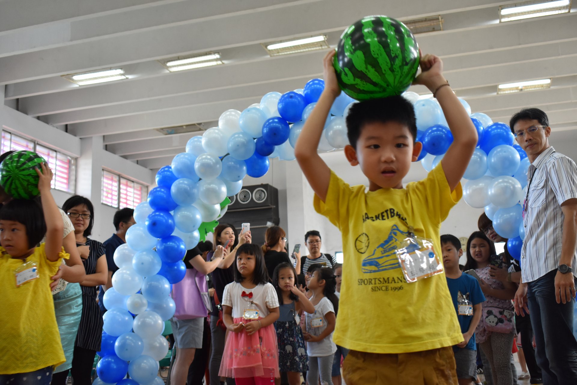活動一開始,所有新生貼上在教室先寫好的許願樹葉卡,然後貼在精心設計的許願樹上,之後通過勤學門成為大成人。(芹菜、蔥、蒜氣球拱門,象徵『跨越勤學之門,進入大成之家』),接著頭頂西瓜造型海灘球走過巧拼獨木橋(巧拼獨木橋象徵『獨立自主』,頭頂西瓜『頂呱呱』) 。最後穿越「平安門」(蘋果氣球拱門,象徵『平平安安、健康快樂』)。新生再敲響「勇氣鼓」,在智慧門前,校長與會長贈送新生智慧福袋。