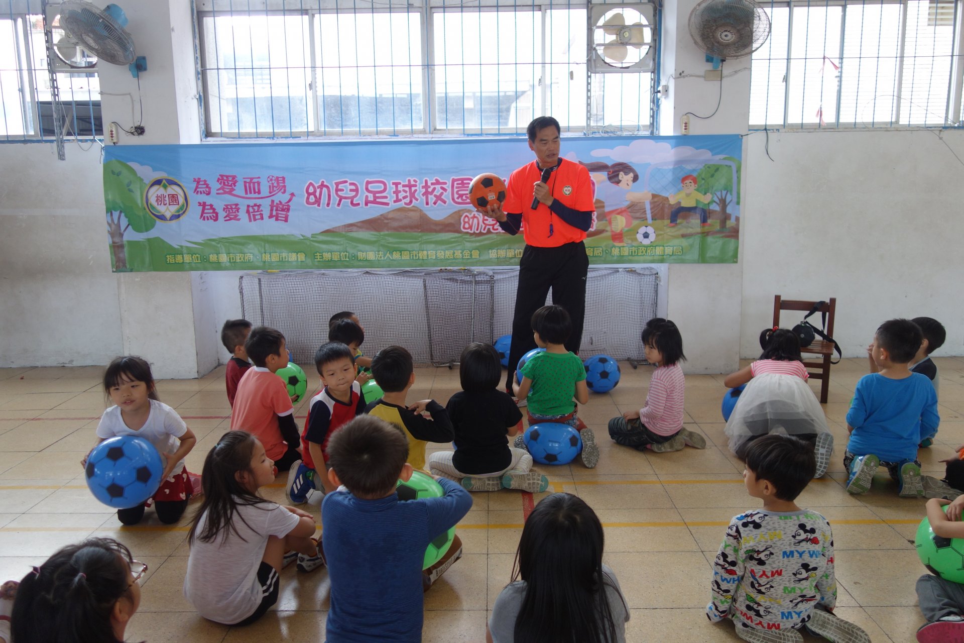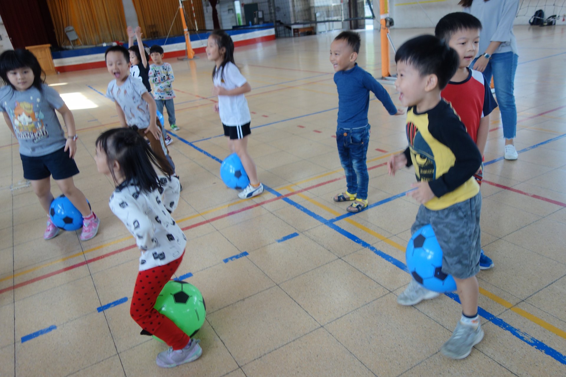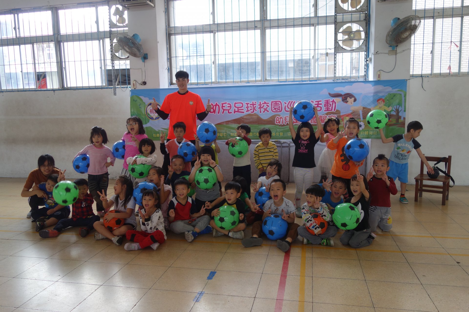 108.11.1(五)早上, 幼兒園寶貝們參加由:桃園市體育發展基金會主辦、桃園市政府教育局及桃園市政府體育局協辦的「幼兒足球校園巡迴活動」, 首先透過律動遊戲進行暖身,接著教練拿出「充氣足球」開啟今天的重頭戲-踢足球, 寶貝們練習點球、運球、傳球,玩得非常開心! 寶貝們還說:怎麼這麼快就玩完了! 大成附幼的寶貝們非常有成為小小足球員的潛力呦!