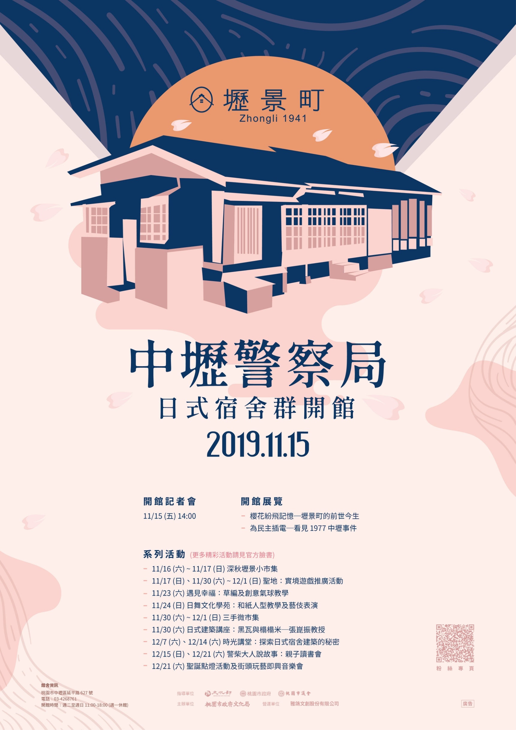 二、壢景町於11月15日下午2時舉行揭牌記者會,11月16日至12月21日配合開館舉辦系列展覽、市集、手作、實境遊戲及講座,敬請協助宣傳。