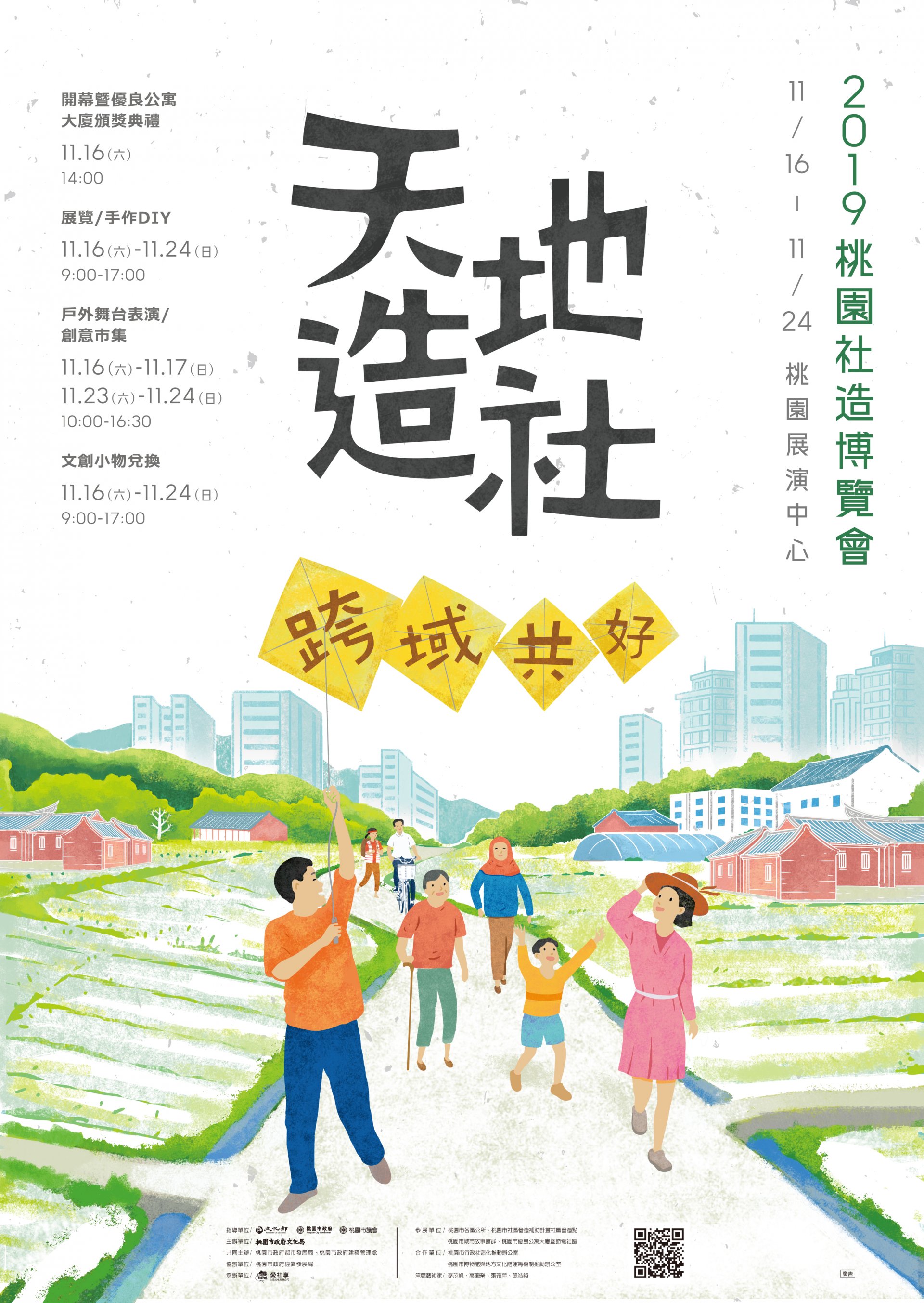說明: 一、依據本府文化局108年11月7日桃市文發字第1080020665號函辦理。 二、旨案為展現本市社區營造成果,串連本市各區公所、社區營造點、城市故事館、社造行動方案及優良公寓大廈社區之成果,以展覽、手作DIY、劇場表演、講座及創意市集等形式,提供社區交流與學習之平臺,開啟更多跨域交流的可能,活動資訊如下: (一)時間:108年11月16日至24日。 (二)地點:桃園展演中心(330桃園市桃園區中正路1188號)。 三、詳情請上桃園社區營造博覽會臉書專頁查詢。