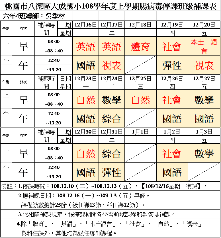 5、因應班級停課,有上課照的同學一併停課,停課四日已收費用於1月課照費用中扣抵。