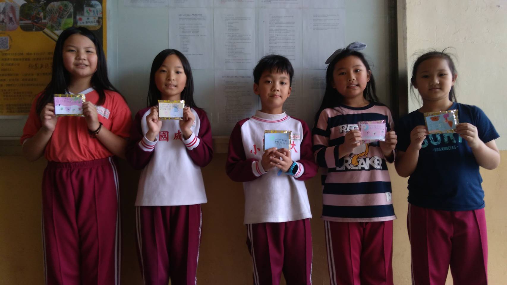 312班邱沛萱老師帶領班級小朋友繪製小卡並分送給校內的班級及行政老師,