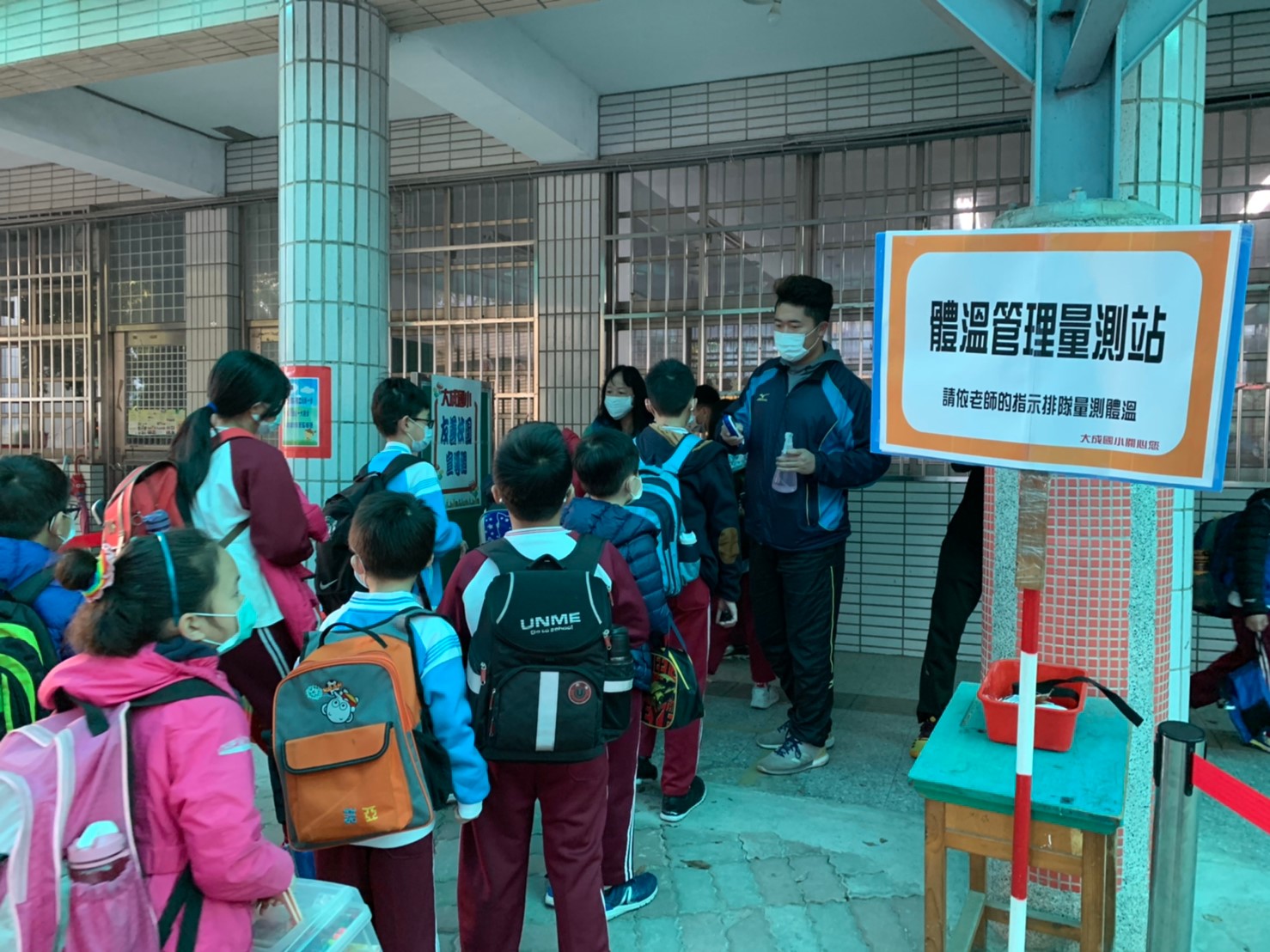 因應新型冠狀病毒肺炎,本校於上學時間在各校門口實施體溫量測管制,體溫異常者聯絡家長帶回就醫,嚴格把關進出人員,感謝全校教職員工辛苦配合校園防疫工作,也期望家長與學校共同努力維護小朋友的就學環境。