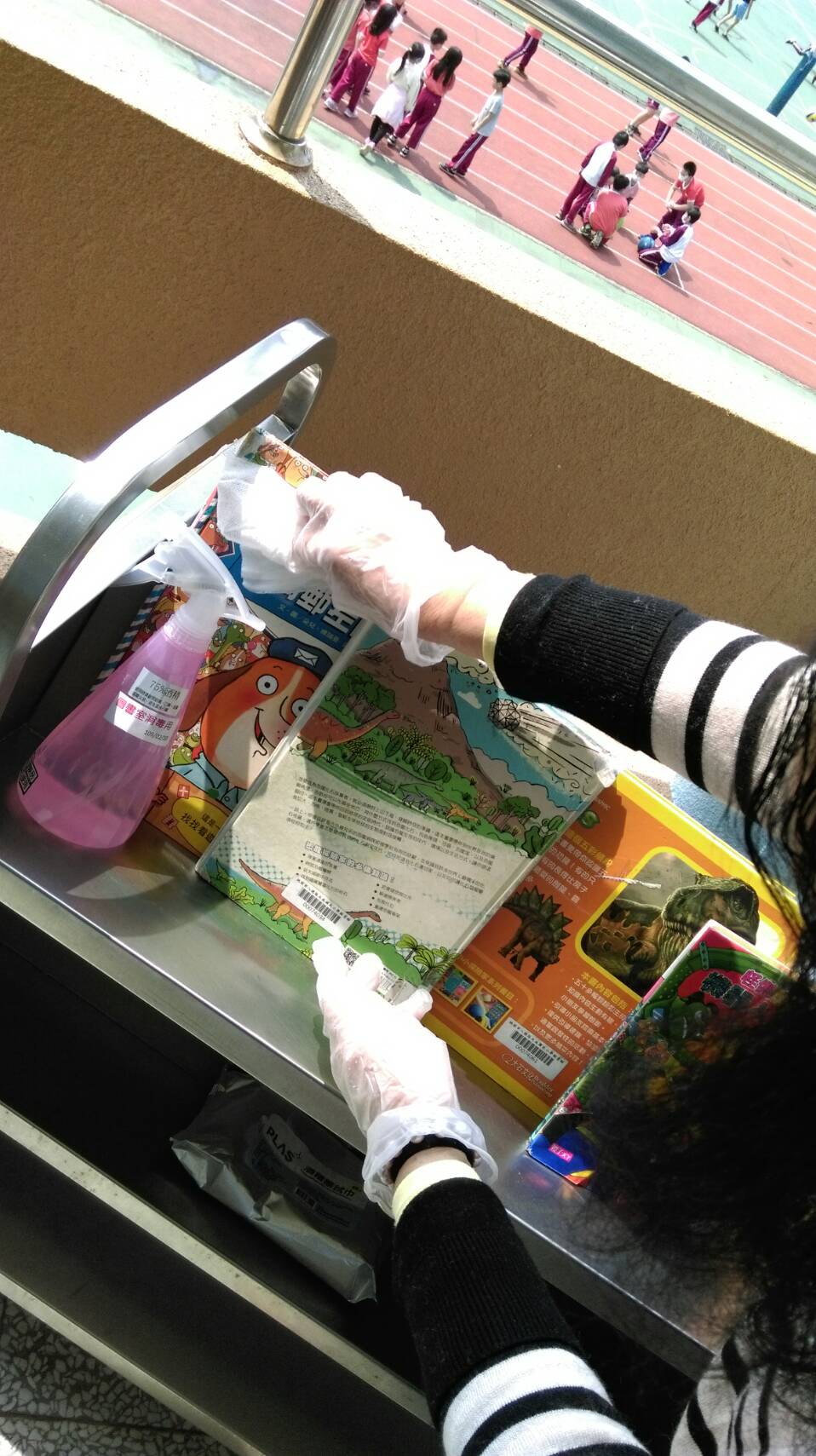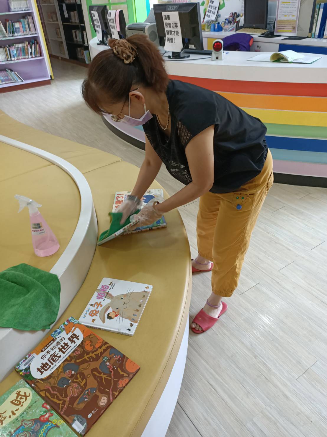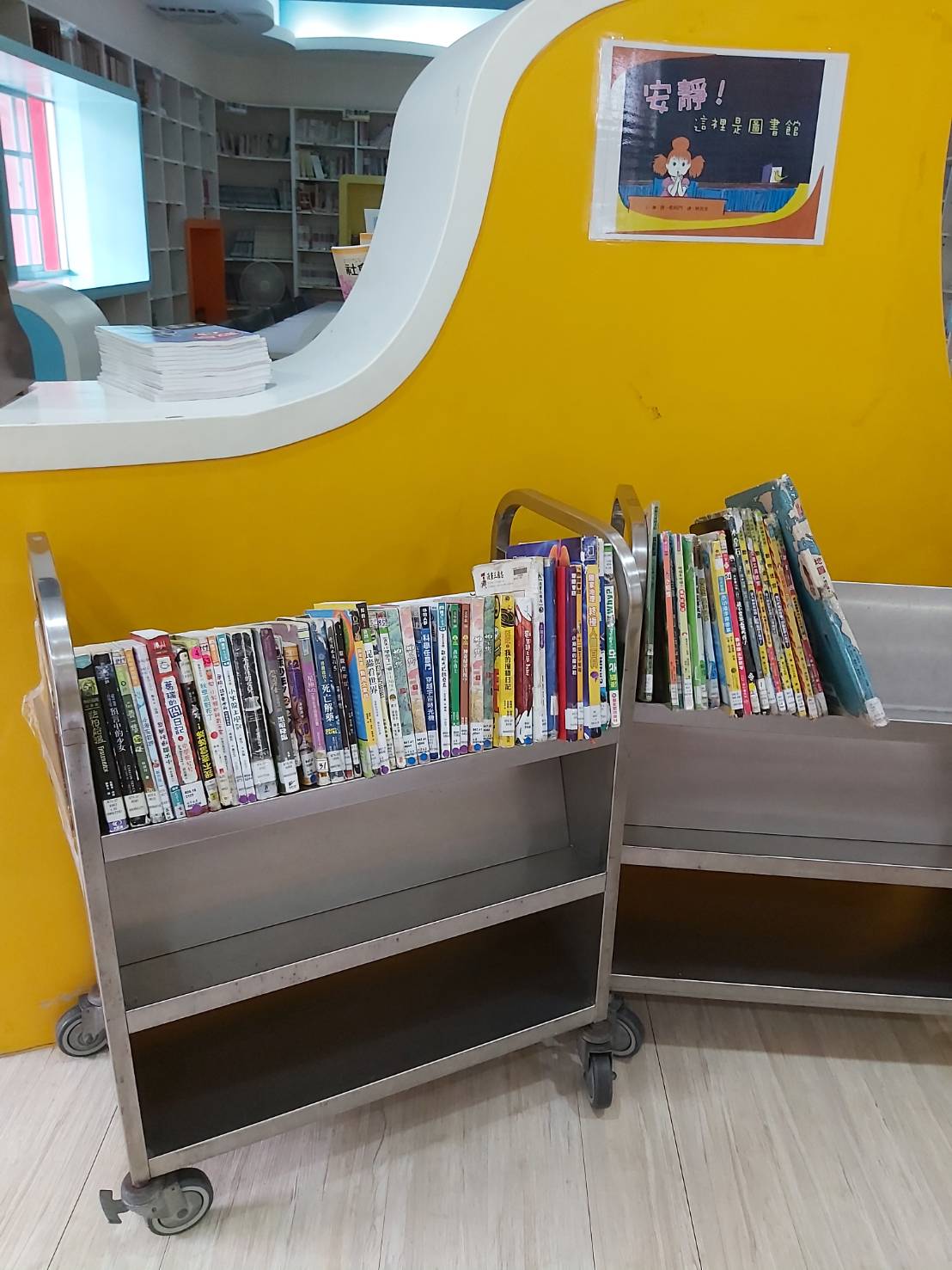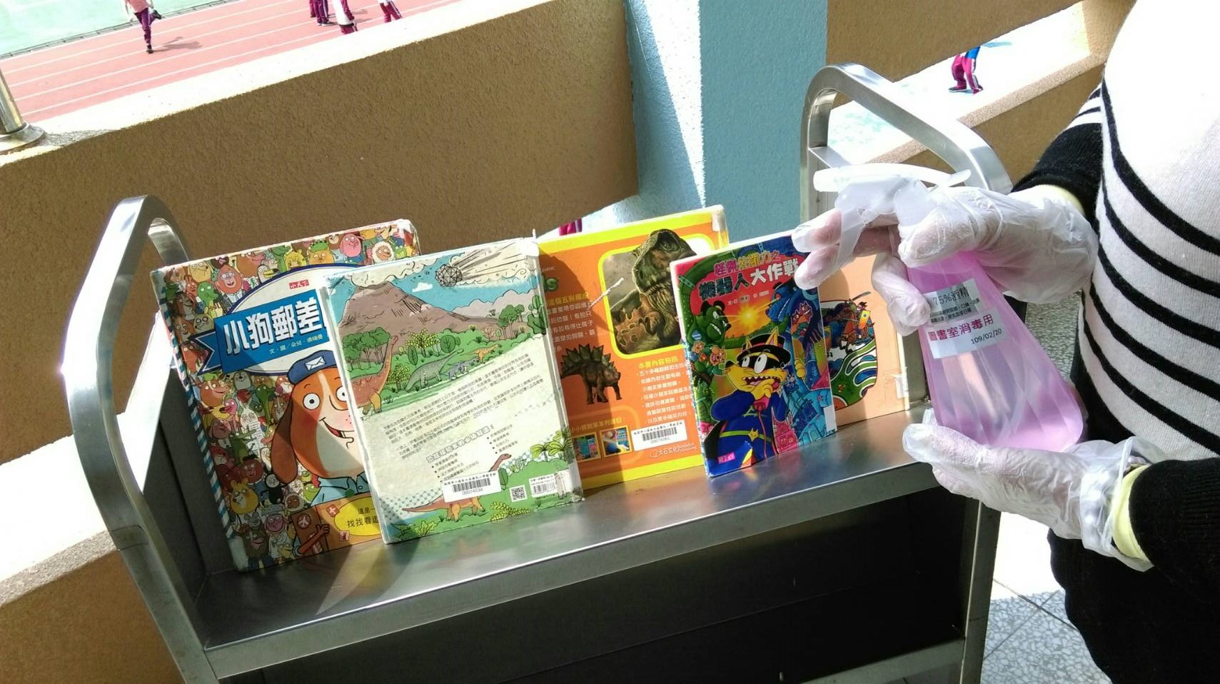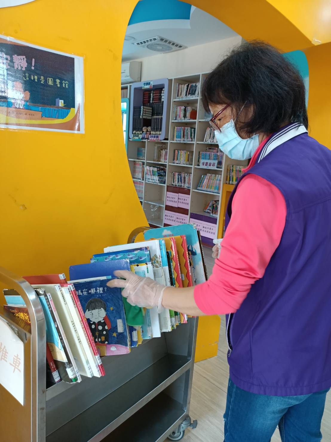 - 書車上有歸還書籍,請噴酒精消毒,若有陽光,可將書車及書本推出去曝曬殺菌,稍後才依原點標籤或分類號上架歸位。