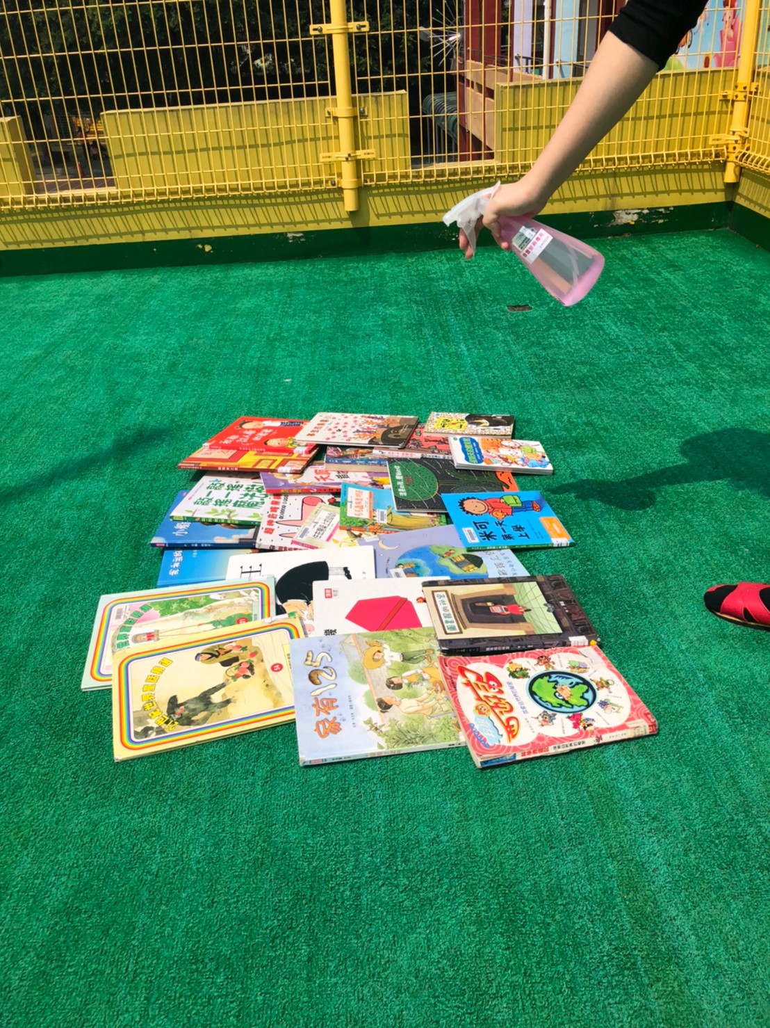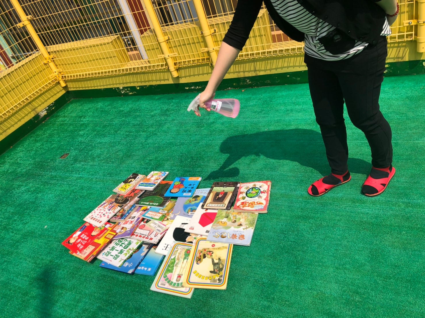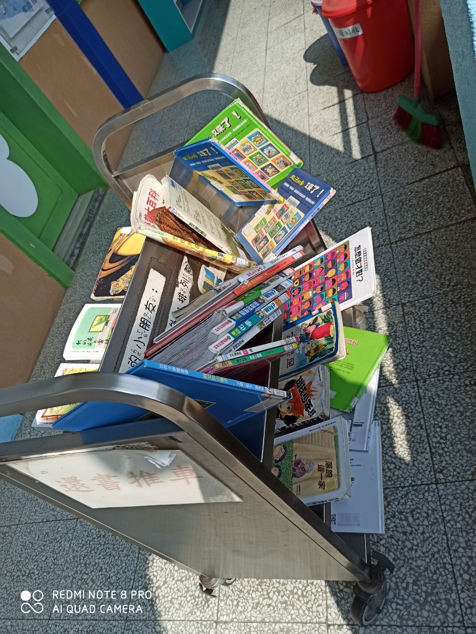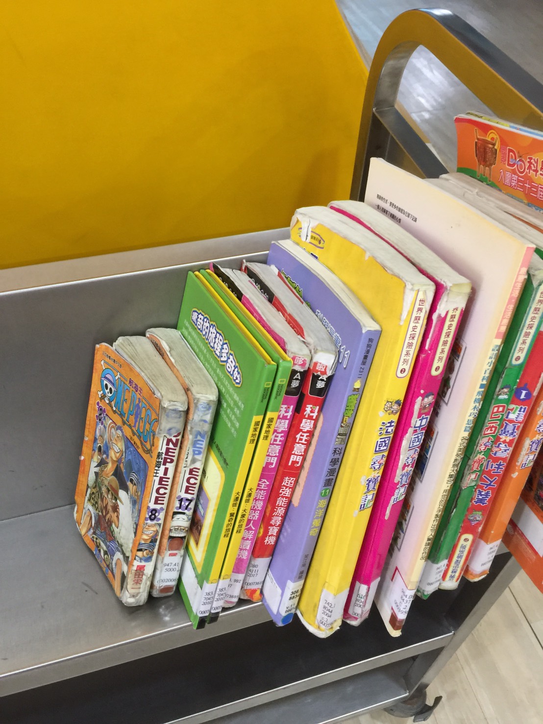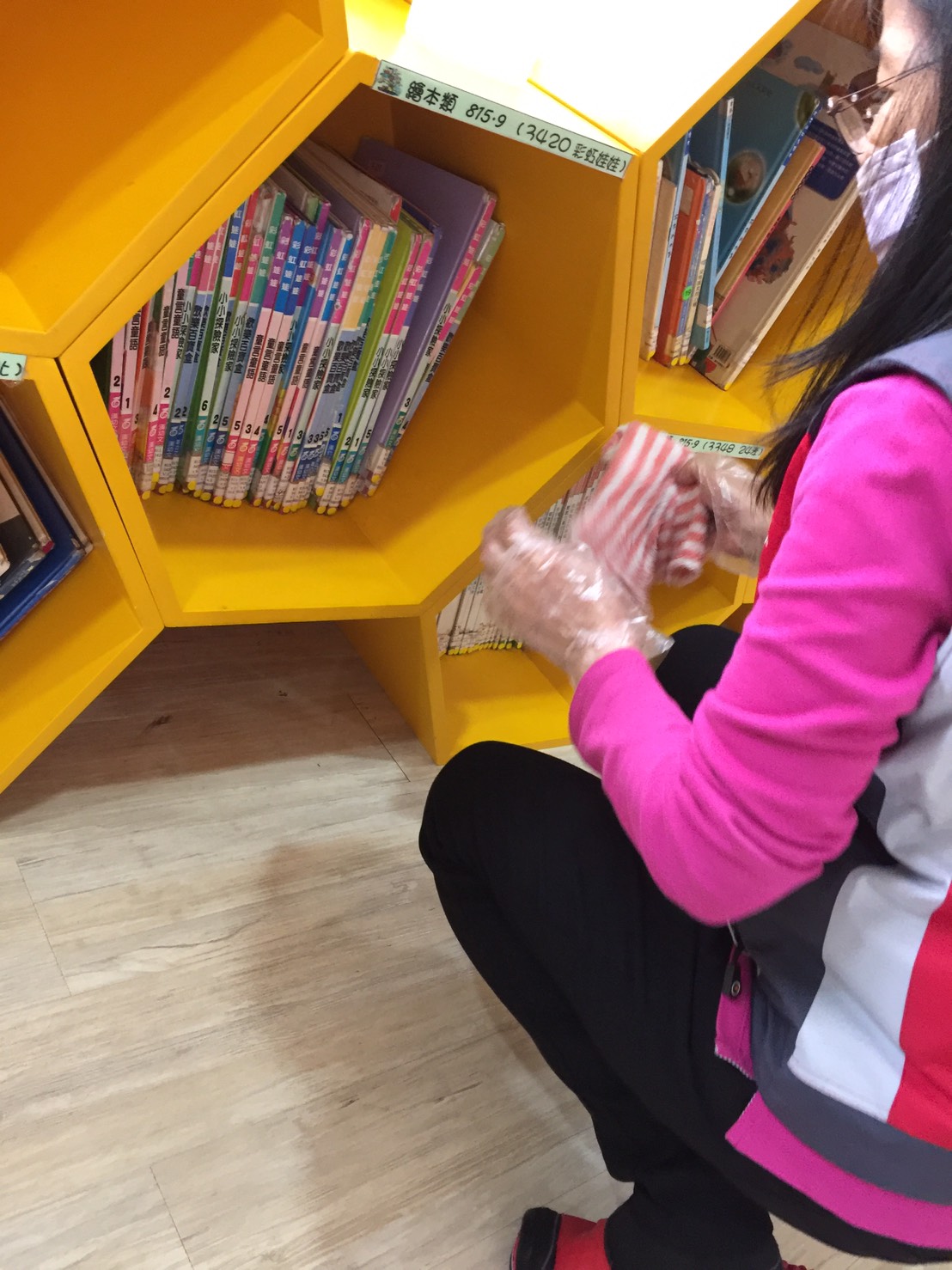 - 書車上有歸還書籍,請噴酒精消毒,若有陽光,可將書車及書本推出去曝曬殺菌,稍後才依原點標籤或分類號上架歸位。