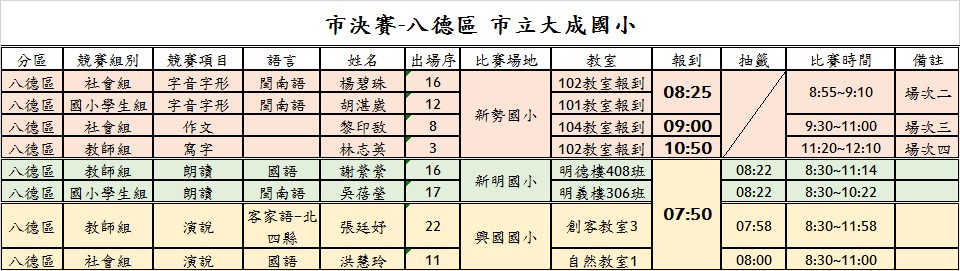 比賽地點: 書寫類:新勢國小 / 朗讀類:新明國小 / 演說類:興國國小