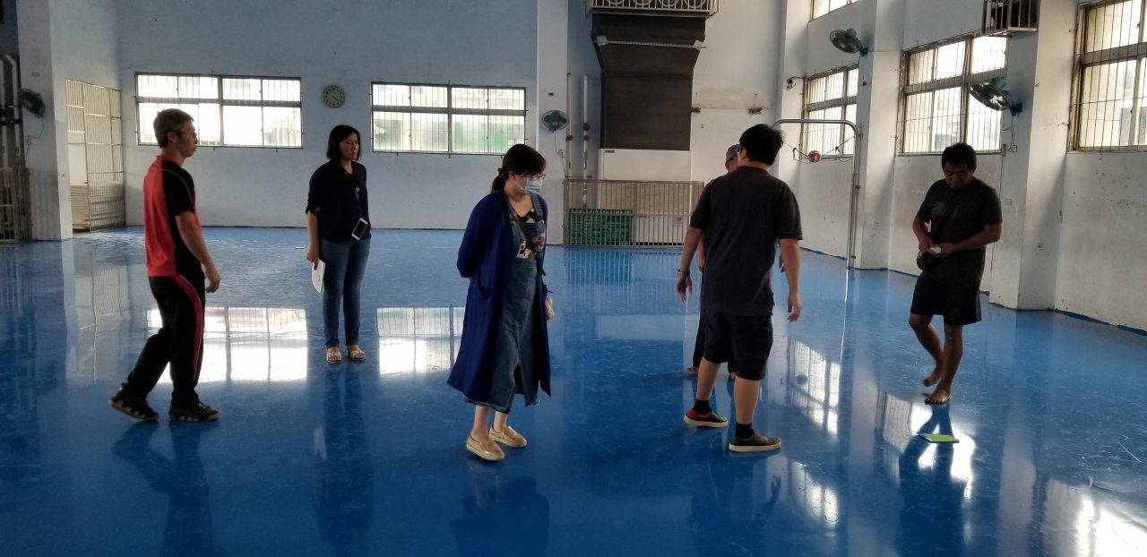 總務艾蓓主任、體育昳帆組長、建築師、施工廠商。