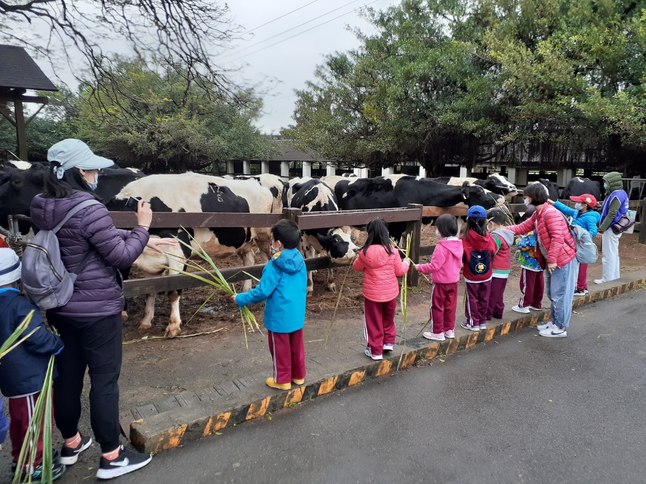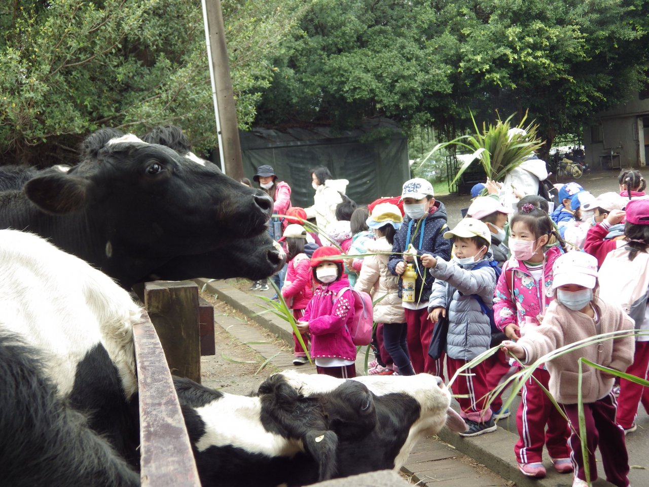 寶貝們餵牛吃牧草,有些寶貝原先不太敢餵牛牛,看到同學玩得好開心,自己也勇敢嘗試!成功餵牛吃牧草後,寶貝們非常有成就感,直說還要再餵;我們到小動物的操場看5隻小豬賽跑,寶貝們投下票券,猜猜哪一隻小豬跑得最快!猜對的寶貝有機會抽到小禮物喔;動物導覽,寶貝們認識許多可愛的動物,有水豚、浣熊、袋鼠、草泥馬等等,藉此了解許多動物知識;遊園列車,寶貝們搭上牛牛列車,觀賞埔心牧場的風光...。