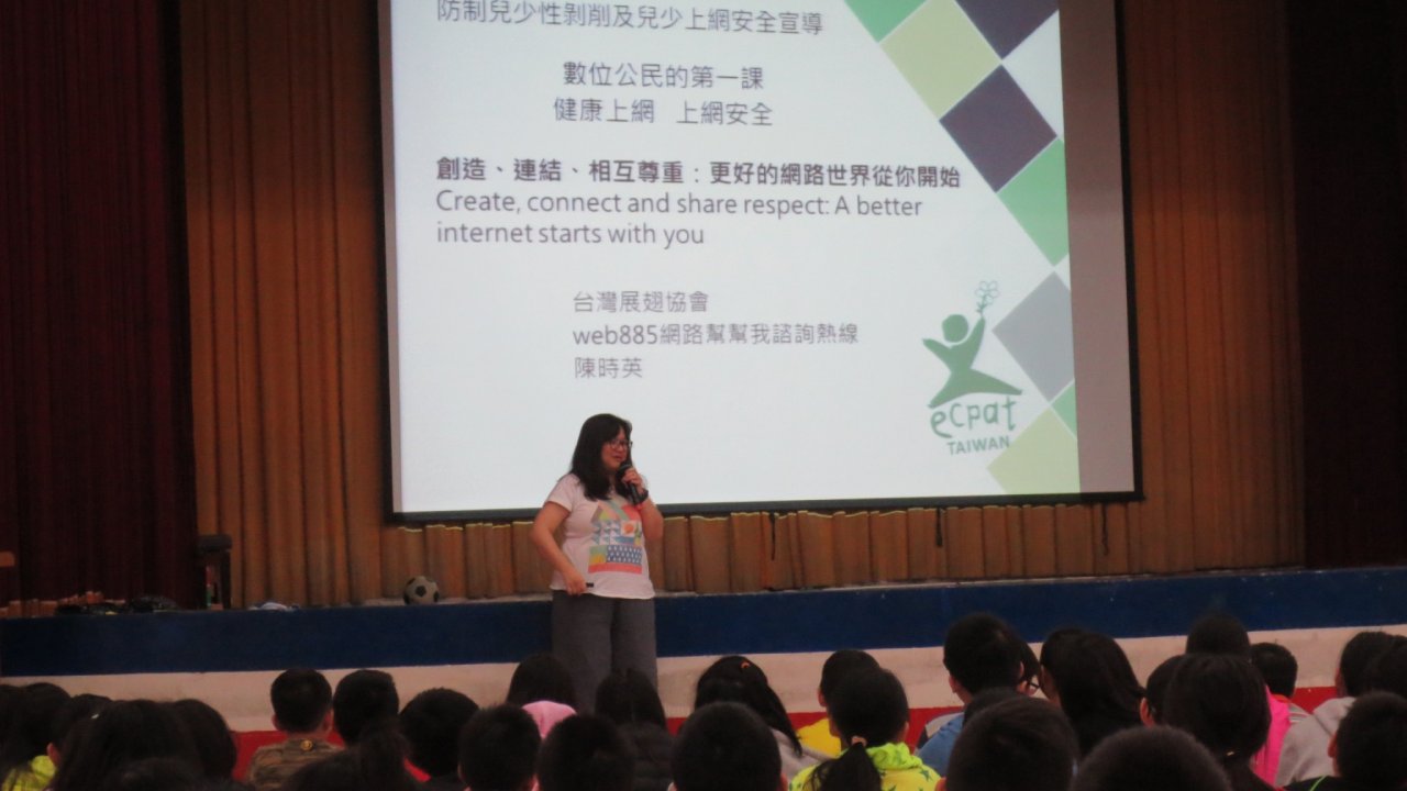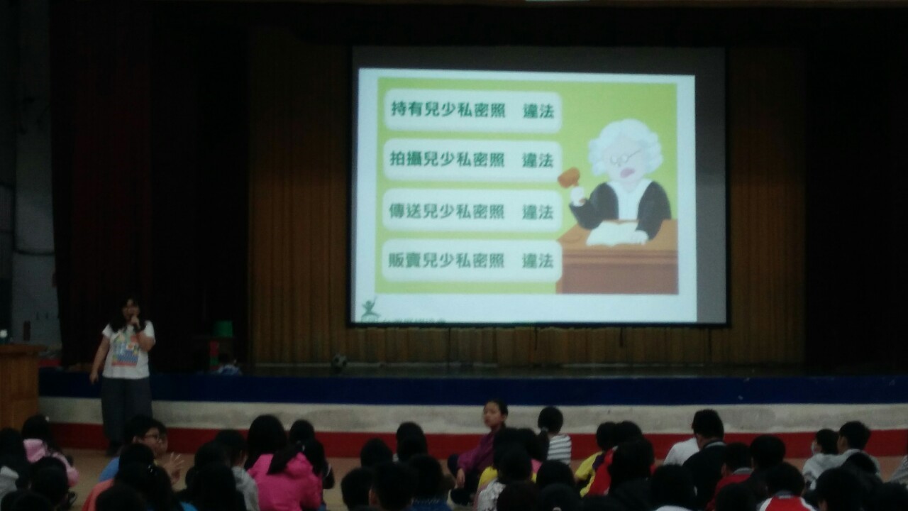 數位時代雖然帶給人們生活上的便利,但也隱藏著許多的危機。兒少很容易沉迷在網路世界無法自拔影響正常的生活,或接觸到不當及違法的資訊讓價值觀扭曲,也容易成為犯罪者覬覦的對象。如何提昇兒少健康安全上網及自我保護能力是刻不容緩的,很感謝台灣展翅協會講師-陳時英小姐到校進行防制兒少性剝削及兒少上網安全宣導。謝謝五年級老師們的協助,及五年級學生專注的聆聽。